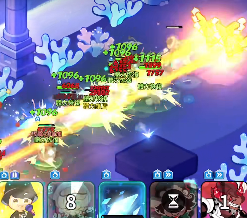 接下来,在骑乘状态下,松果饼干的每一次普通攻击都会眩晕一个目标,一般这个目标都是敌方单位攻击力最高的。如果这个时候敌方单位有冰冻效果的话,则会产生连锁眩晕。如果敌人有眩晕免疫的话,则会造成大量的额外伤害。