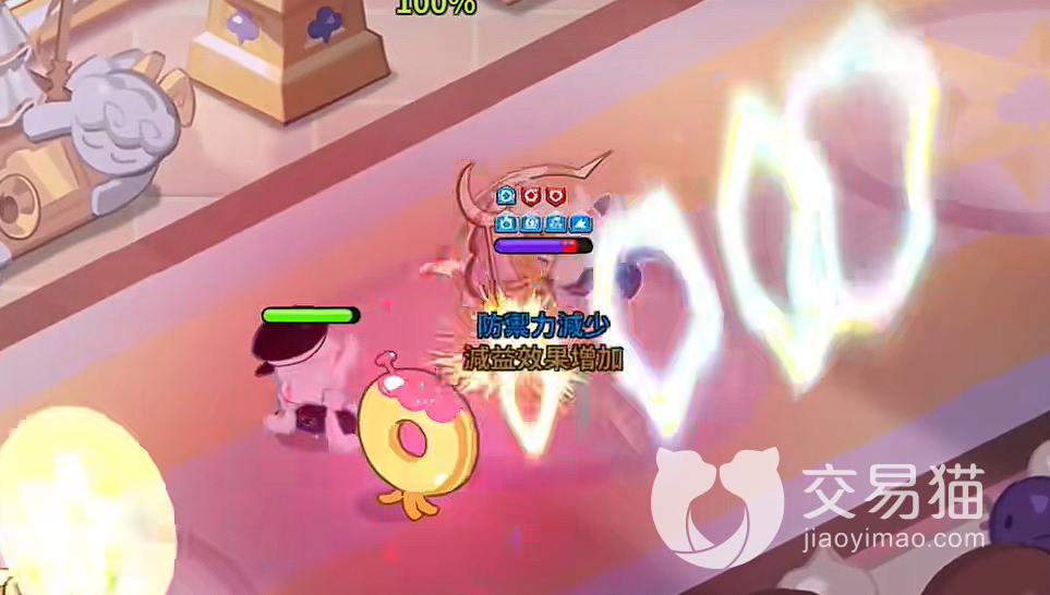 被来自宇宙的甜甜圈光圈攻击过后的敌人,除了一些特定的boss以及饼干角色以外,基本上所有的小怪都会变成甜甜圈。并且当变成甜甜圈的敌方数量,越来越多的时候还会发动甜甜圈的快速冲刺,对敌方造成高额伤害并眩晕效果。