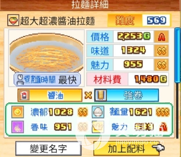 酱油汤底是玩家初期就能做出的风味,在做好适配的面条并煮好汤汁后,各位就能来diy配菜啦,酱油汤底味道清爽,适合散发香气的烤葱(技能为缩短顾客吃面时间,以及在饭后一定时间内顾客的行动速度有提升)和略带辛辣感的红姜(芳醇,提升魅力),烤葱8份,红姜一份。