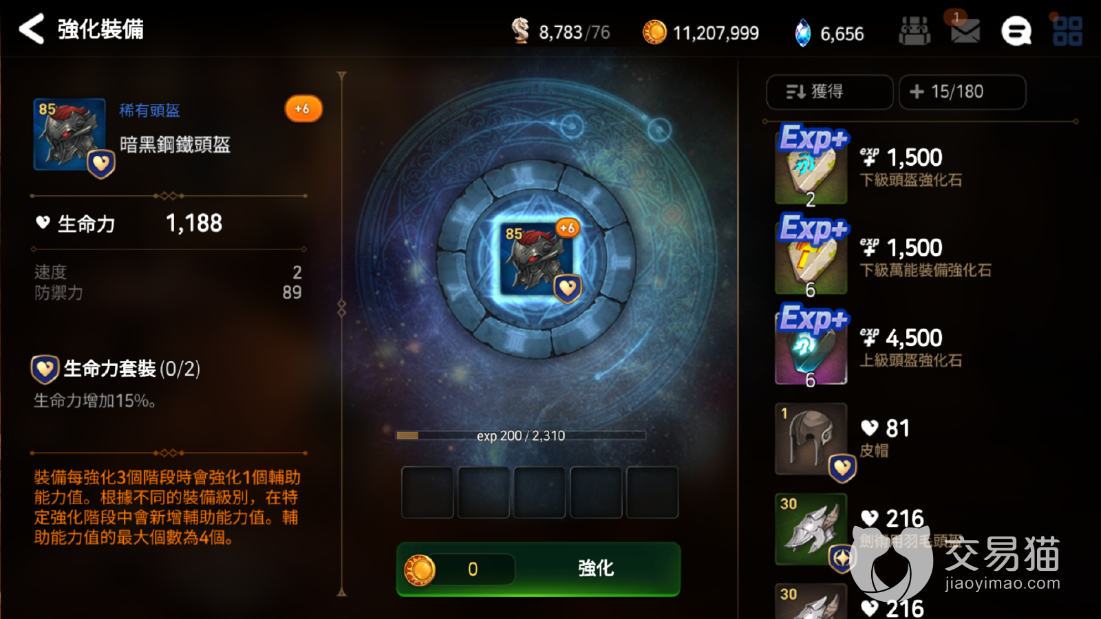 2、提条选择:通常情况下装备词条的选择肯定是三攻两暴的组合,这个可以最大程度发挥出装备的强度。只要这些东西都是满值得了,那么装备的强度肯定是八十分起步的。