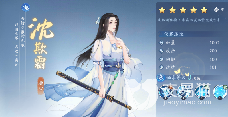 水沈欺霜,怒技群攻概率附加冰霜效果,3级后有高概率冰冻敌方最高攻击的单位,能与前面提到过的剑圣、雷元戈组成连携,但稀有度较高,培养成本高。
