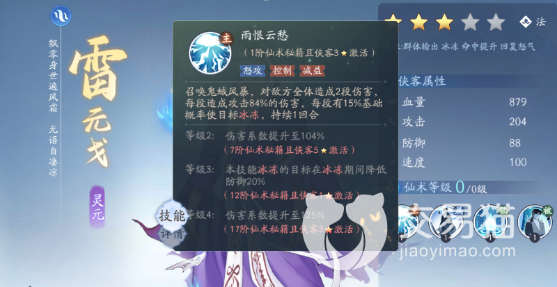 雷元戈,可以说是前期非常好用的角色了,初始3星升星培养都很容易,主动技是群体2段伤害,有概率冰冻目标并降低被冰冻单位的防御,普攻还可以降低目标的效果抵抗,种种效果叠起来之后就能有很大几率冰冻敌人。