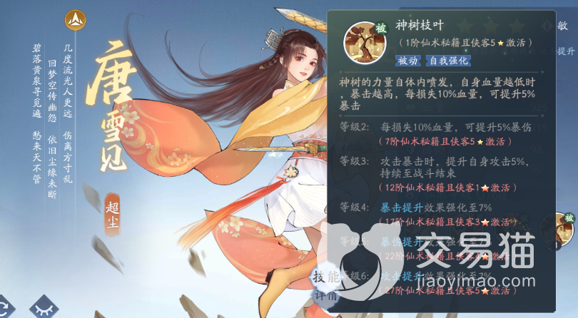 水雪见有群体治疗,对残血友方的治疗效果更好,损失的血量越多治疗效果提升越多,普攻升级后不仅能治疗还能提供减伤,被动是强力的自保技能,在受到超过自身血量30%的攻击时,立刻治疗自己并给自己添加1个【神树护体】的效果,降低受到的后续伤害,解除1个debuff(优先是控制),持久战中奶妈只有一直活着才能保护队友。