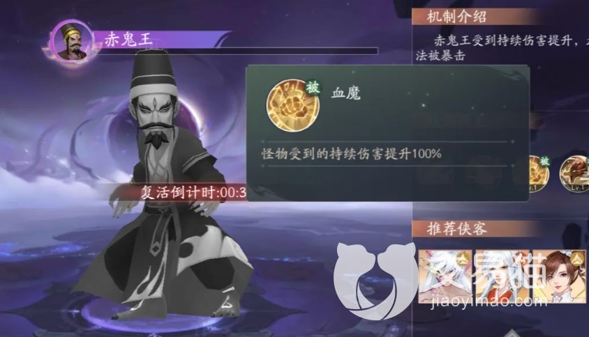 打鬼王有一个特殊机制受到的持续伤害会有额外100%的加成,因此我们在搭配阵容的时候可以选择一些有持续伤害的,通常是火属队伍。比如说火土星璇、火阿奴,这三个侠客是肯定要摆上去的。