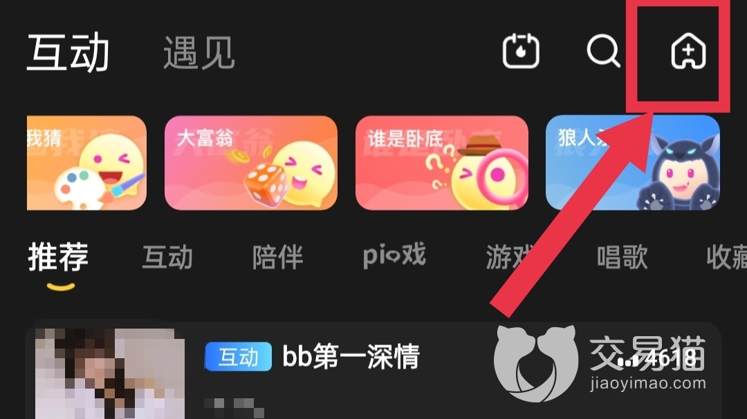 点开互动后来到了这个界面,如上图所示,这里有许多其他玩家创建的互动房间。我们可以看到右上角有一个类似小房间的图标,然后点击进去。