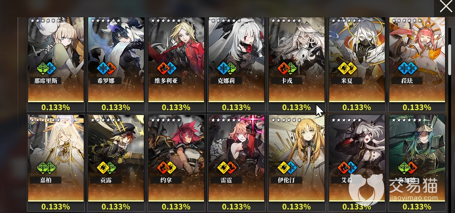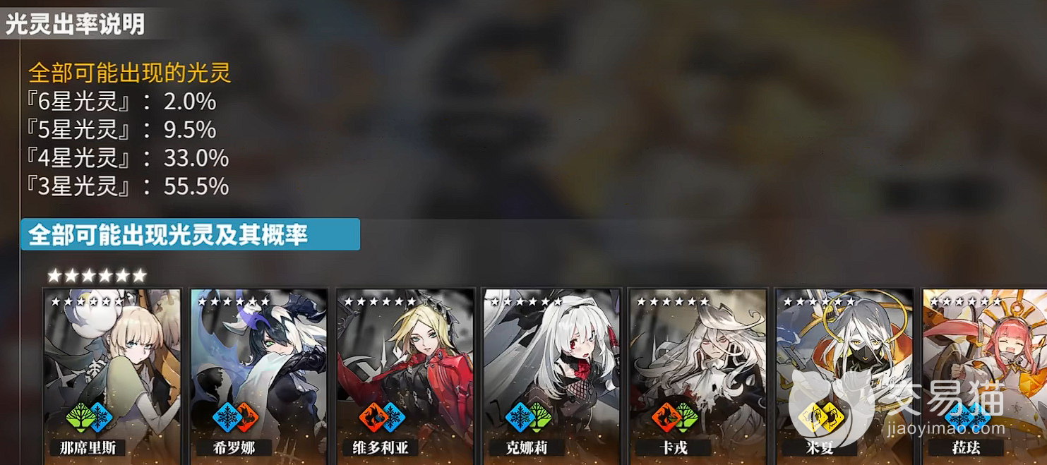 星级抽取概率方面,六星2%没什么好讲的,五星的话是达到9.5%,四星的话是33%,三星的话是55.5%。还算不错,并没有特别超出预期。