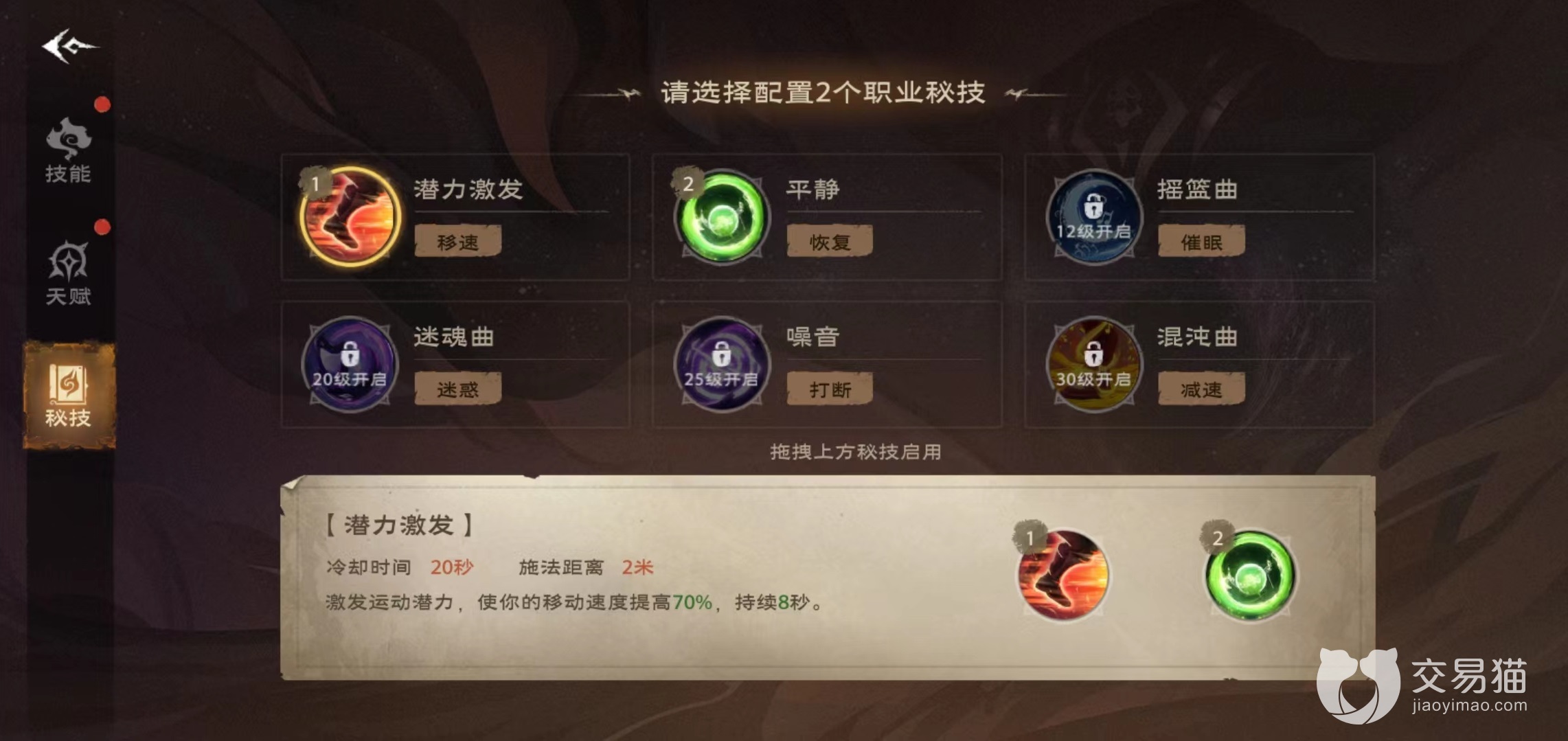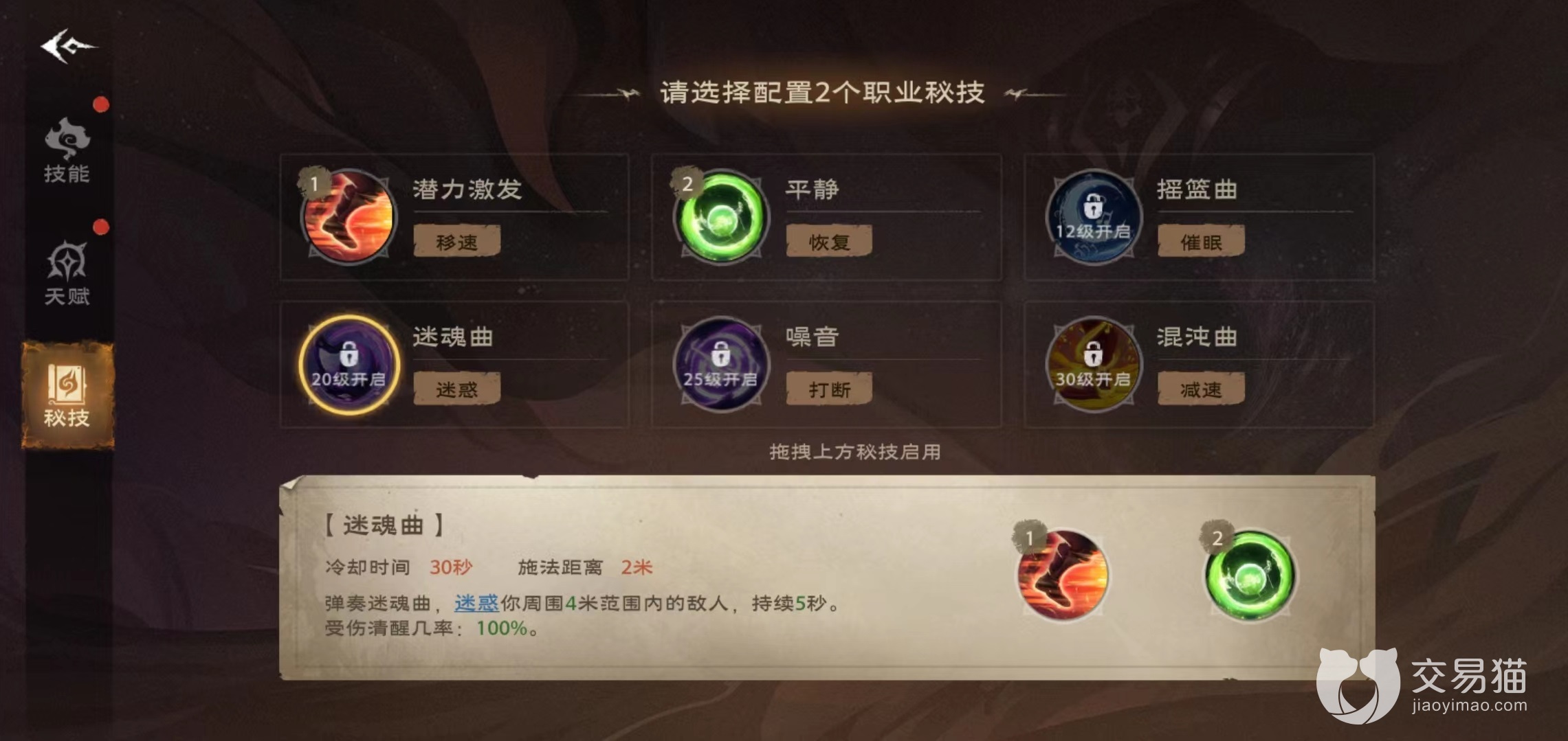 如果选择协奏模式来为队伍进行治疗或者是其他辅助,那么在秘技搭配上小编推荐迷魂曲和潜力激发。潜力激发同样利用移动速度来走位,对于治疗来说因为很多技能也是有范围限制,所以要尽量快靠近关键目标。迷魂曲是可以将周围四米内敌人迷惑,一旦治疗遇到敌人小怪围攻,立即释放迷魂曲就可以保证不会被小怪击杀。因为作为治疗在仇恨列表上仅次于坦克,所以必须要留下保命技能。