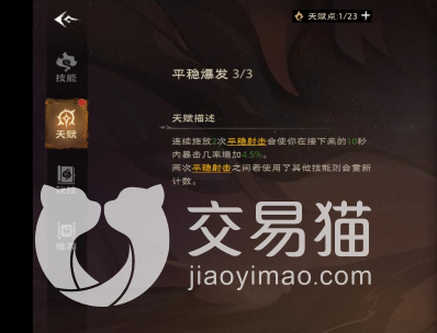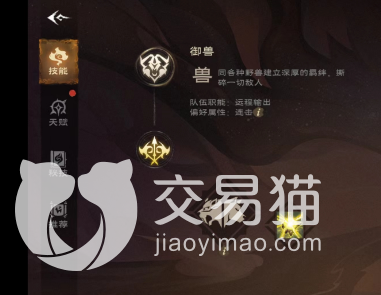 在游戏当中,找到菜单然后选择其中的技能,在技能里就能看到两种不同的形态。这里就以游侠为例来说一下,游侠是御兽和狩猎两种类型,如果是我们选择御兽的话,就可以交换出很多的野兽来攻击,如果说选择狩猎的话,狩猎就是在战斗过程当中利用一些弓箭进行远程的攻击。御兽偏向于练击,狩猎偏向于暴击,我们可以在战斗过程当中来回切换,这样有助于我们战斗。