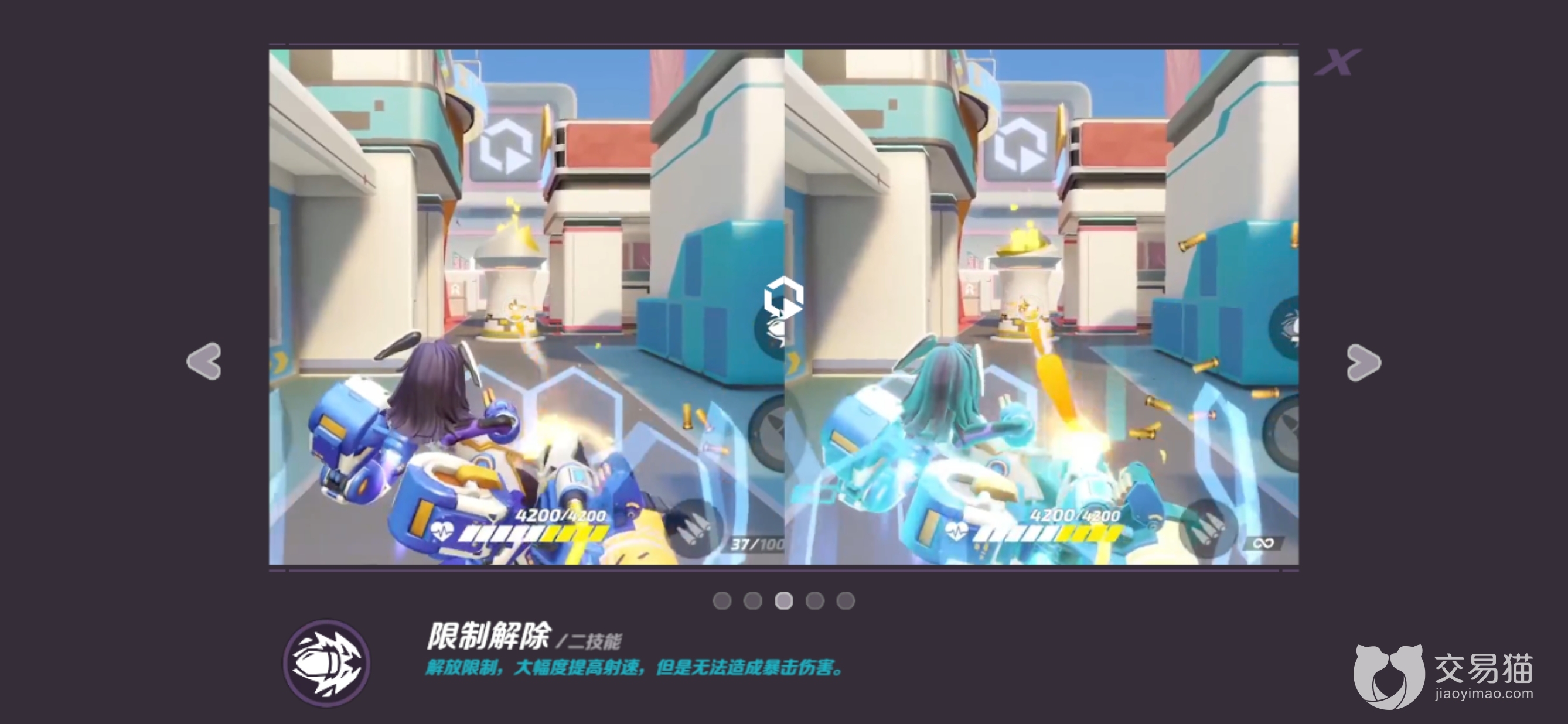 解放限制,大幅度提高射速,射速提高百分之百(提高百分之百?这哪叫提高,这不明显的翻倍了都)。挽救了一技能降低攻速的局面,一二技能的搭配使用,不只是简简单单的一加一等于二,而是一加一大于二。两者相辅相成,一技能的开启以1.5的倍率提高了攻击力,二技能的开启使攻速变为原先的两倍,造就了现版本的最强者,任何肉盾、护盾在暴雨面前都会被机枪粉碎。