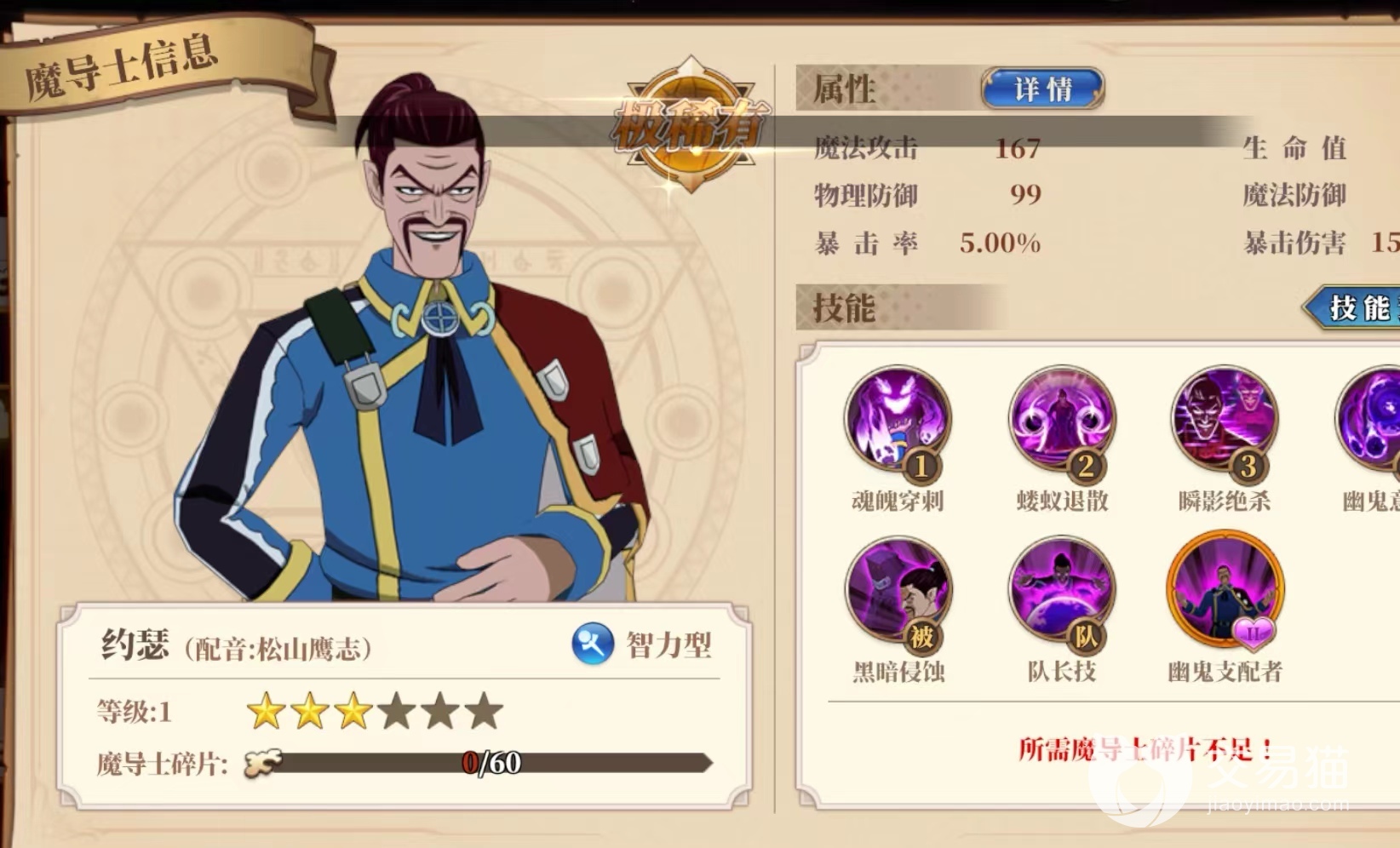 那么大家看完后觉得妖精的尾巴激斗约瑟技能强度怎么样呢?可能这个角色在造型上是差了点,一看就是坏人相,当然角色在游戏中确实属于反派角色,如果大家在游戏中抽到了,还是值得培养的,没有颜值但是强度在线。