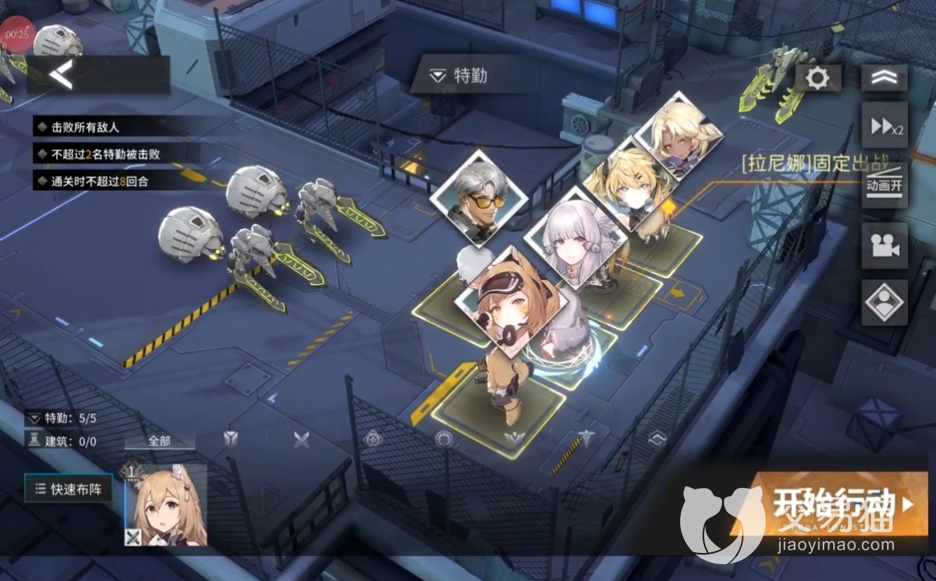 首先,在开局时,玩家需要安排角色的站位,这时候就要依据角色的能力以及他们的移动力来进行安排了,由于离玩家最近的这两个敌人所拥有的血量并不算很高,所以玩家是可以一次性去秒杀他们的,为此小编建议大家最好把输出能力最强的两个角色去放在最高的站位,也就是可以把拉尼娜与脉冲这两个放在前排,法夫纳作为飞行单位,她的可移动距离是最远,因此把她放到队伍的后排进行打底,血叶兰得放在最前方,毕竟其移动力实在太拉胯,如果放的太远,可能回合都结束了,她还没出手。罗宾作为一位狙击手,她的站位就可以随意放置了,毕竟是远距离输出,站在什么样的位置都能打到敌人。最后的弧月就放在中间位置即可,要知道她可是能够给队友加暴击的存在,非常强悍,就算让她冲到前线也是完全可以滴~