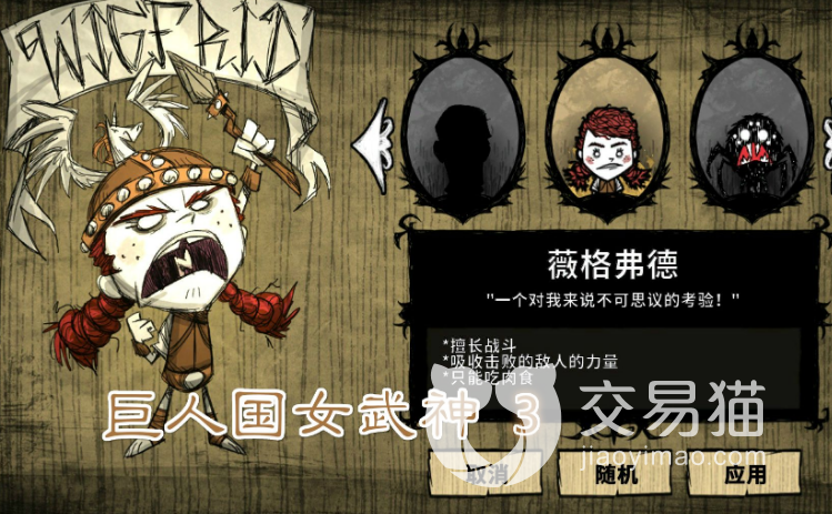 第3位角色是玩家都很喜欢的沃尔夫冈,在游戏中他还有一个称呼叫大力士。吃饱的时候非常强悍,比较害怕黑暗以及怪物。