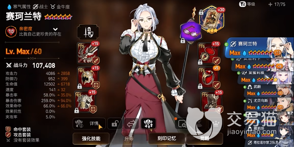 此外核心输出赛科兰特也是不差,作为阵容里面的核心输出,对于新手很是友好,关键是在养成方面的成本并不是很大。