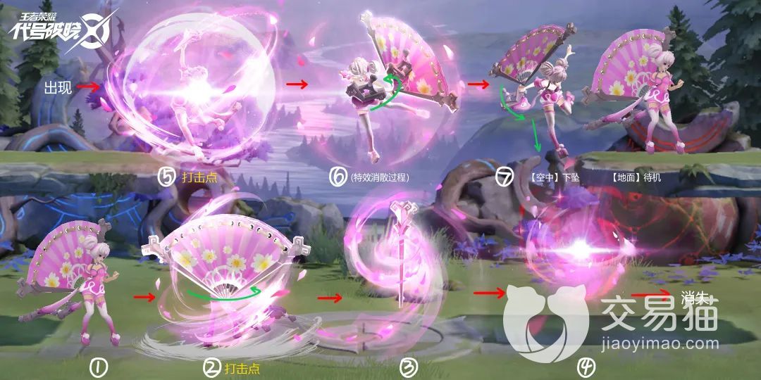 技能一:绽放之舞。这个技能属于主动攻击技能,小乔扔出回旋扇子攻击前方对手。如果玩家在扇子旋回小乔方向时没有及时接住扇子,那么扇子就会一直向反方向一直飞,直到飞出地图。