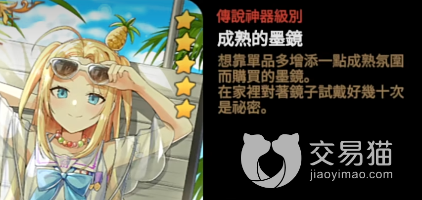 目前比较适合水呆的神器有2个,其中一个是她自己的“成熟的墨镜”,有减伤有加暴伤,神器的暴伤是能够突破面板限制的,补充伤害。另一个可能更好的选择是复活神器,水呆的肉度并不是特别高,所以复活站起来多一次夹攻是挺不错的选择。