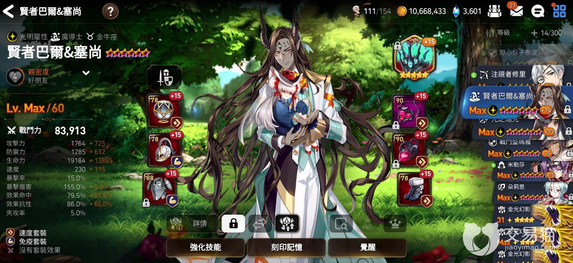 其技能可以对敌人造成睡眠效果,并且还可以给自己提升速度值。运气不错的情况下,可以一直强控对面一个角色还能给自己拉速攻。大招可以对敌人全体造成沉默且恢复自身生命值,主要是二技能可以召唤雷电攻击敌人,满的话,将近有90%以上的概率强化解除敌人的一个强化效果。而且还会有80%的概率造成睡眠,并且还能再拉一次速攻。不断的干扰控制,打不打得过放在一边,但控制干扰能力的确是一绝。