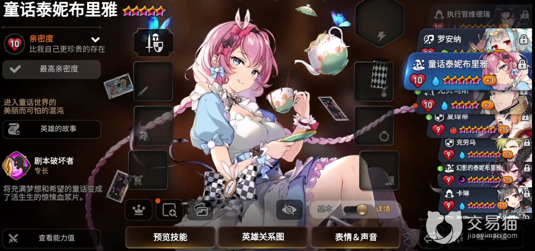 作为官方亲女儿之一,这个角色的破防能力和辅助干扰手段相当出色。技能梦魇可以对全体攻击造成70%高概率的两回合防御力降低,以及一回合的睡眠效果,且使自己在两回合内攻击力获得提升。防御力降低也达到了70%且睡眠效果使该回合内对面获得暴击抗性降低100%的效果,为我方的输出铺平了道路。
