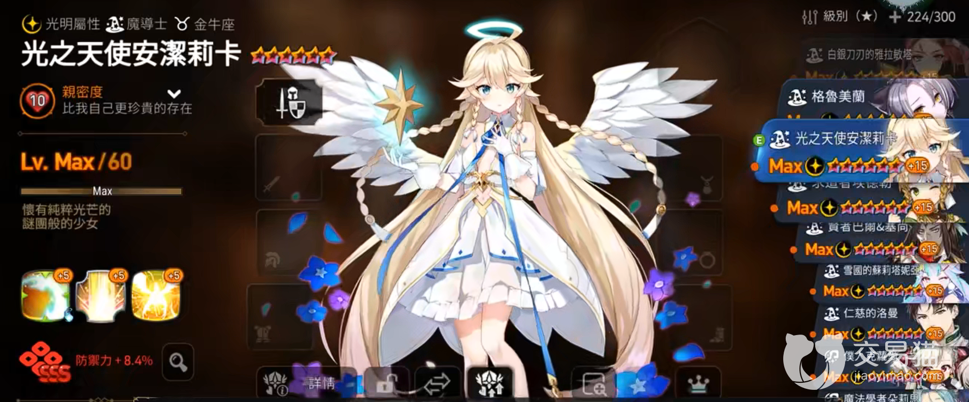 其主要核心技能便是二技能光之守护者,角色不会被附加眩晕效果,而且除光天使以外,我方所有人员受到攻击的时候,提升相当于自身我方部队受到攻击人数乘以8%的数值,且受到全体攻击时,有基础75%的高几率使用守护天使,解除我方一个弱化效果,并获得一次技能伤害无效。