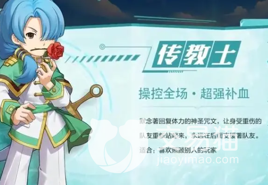 传教士:使用杖作为武器,则是一个辅助型的酱油职业,奶妈,是一个擅长治疗自己和全员的团队治疗向职业,在高压团本中属于不可或缺的职业。练级能力和单挑能力是中等,生存能力是上等,适合喜欢治疗型角色的玩家。