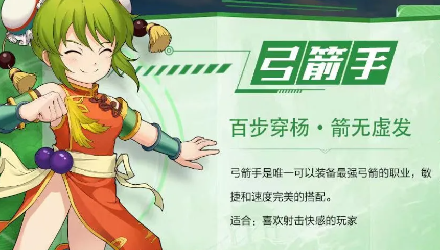 弓箭手:使用弓作为武器,拥有较强的群体输出能力,擅长群攻。命中精准的物理系向职业,主打一个稳定,适合新手前期刷级使用。练级能力和单挑能力是上等,生存能力是下等,适合喜欢远程输出型角色的玩家。
