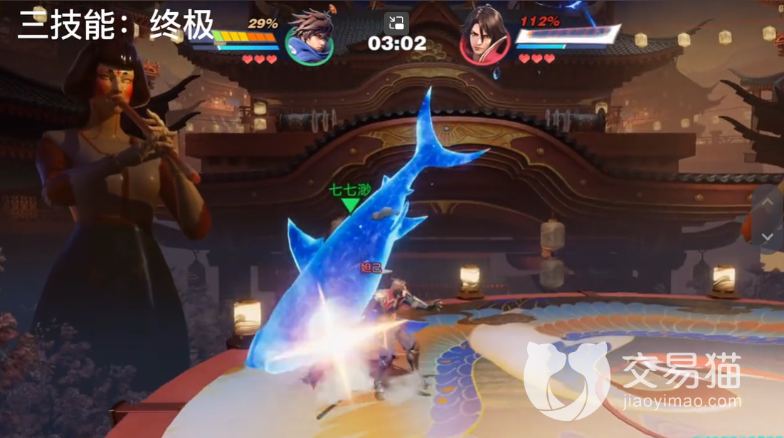 终结技能是澜的大招他用攻击将敌人击飞,然后变成鲨鱼,将敌人砸向地面,造成巨大的伤害。这个技能可能会在飞行过程中产生多段伤害,最终在鲨鱼落地时,造成最大的伤害。