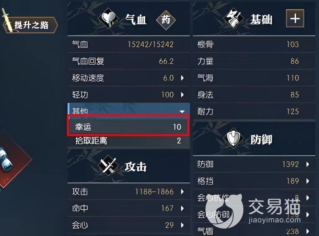 不过在这样个界面里面是看不到幸运值的,所以玩家必须得点进详细属性里面去,在这个界面也没有幸运值,然后大家再可以点击其他这个选项就可以看到幸运值了。
