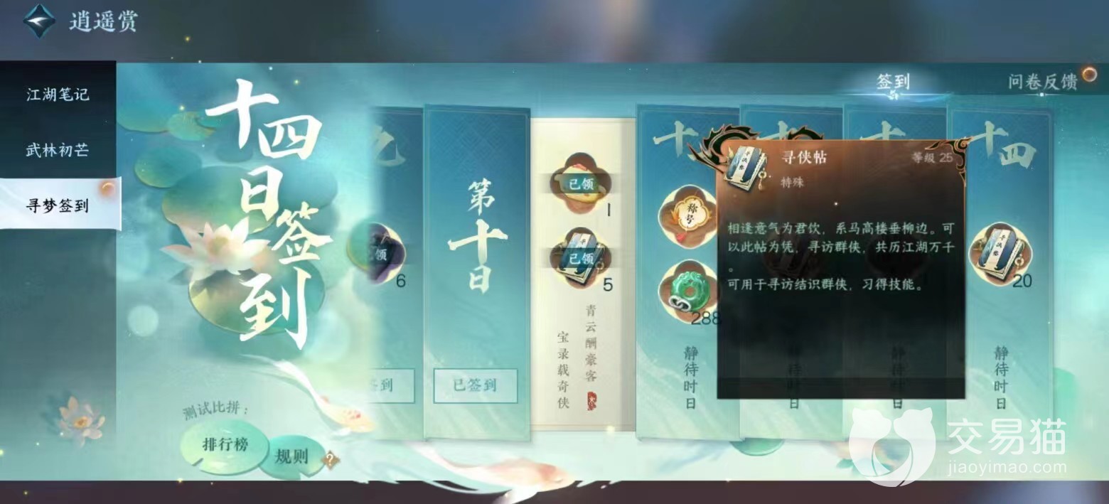 首先大家要了解的就是寻侠方式,玩家在刚进入到游戏里面之后,可以去游历江湖,在这个过程中会接触到更多的江湖人士,除了这个方法之外,还有就是能通过寻侠帖来认识江湖人士,而且寻侠帖对于玩家来说,获取难度并不高,玩家可以通过一些玩法或者是挑战去获取,所以不用氪金,也可以得到的。