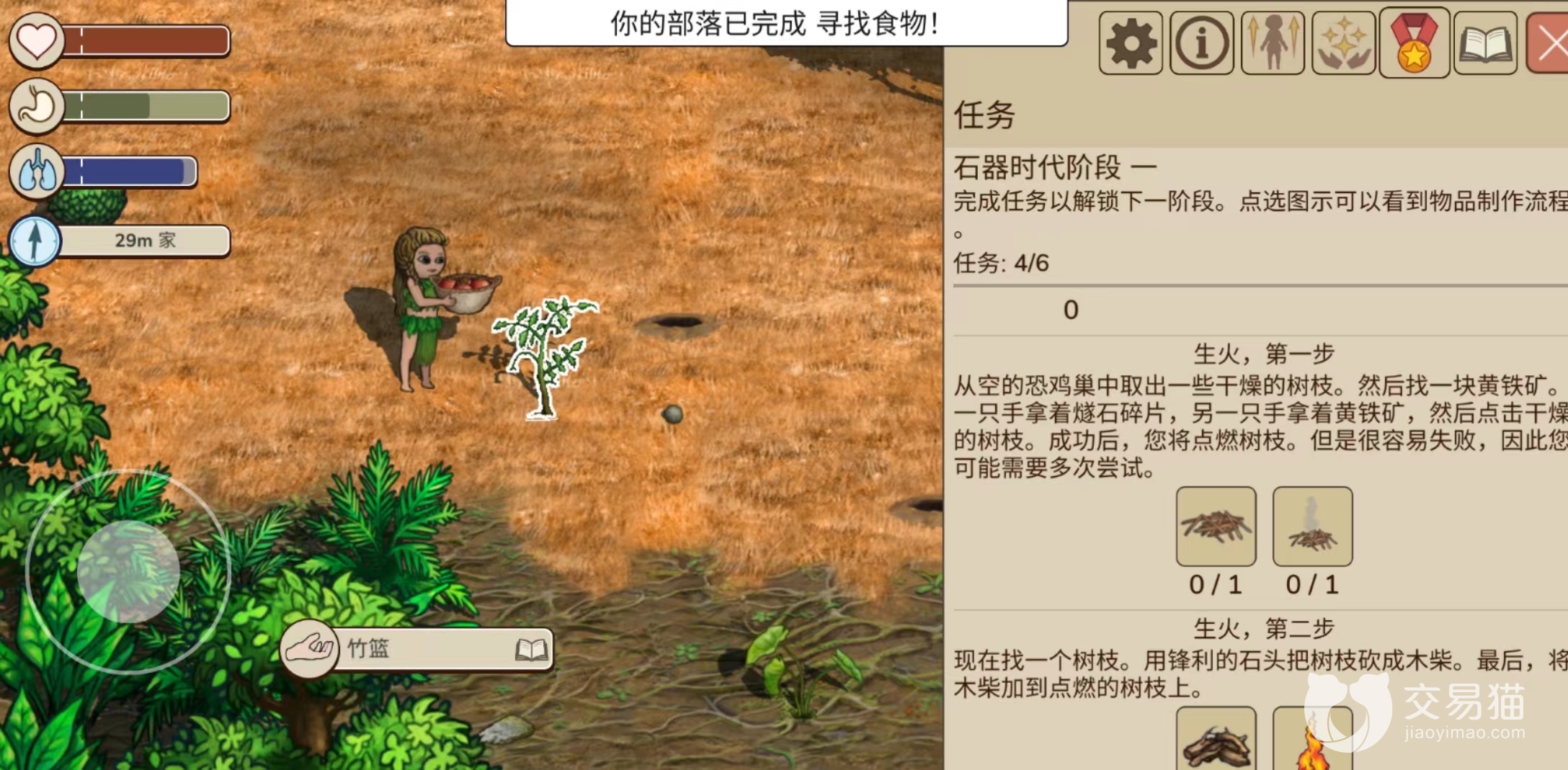 3、学会查看任务引导:我们制作物品的目的是建设部落,因此也需要完成任务按照任务的目标制作物品,我们如果不知道该怎么制作物品的话,可以点开任务栏,查看物品详细的介绍和制作步骤。