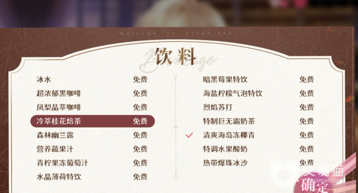 在选择饮品上可以选择“冷萃桂花焙茶”或者“清爽海岛冻椰青”都行。
