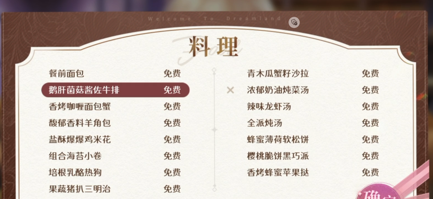 随后要求选择食物上选择“鹅肝菌菇佐牛排”即可,德米安很喜欢这个食物能增长2个心。