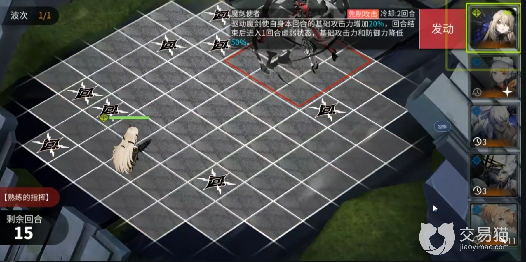 第2个技能是一个连锁技能,叫漆黑荆棘,这个技能属于范围性的技能,也是具有攻击力的。它可以针对一定范围内的所有敌人,造成非常高的攻击效果。并且在魔剑发动时,玩家们对上比艾蕾雅的生命值低1.5倍的敌人时也能够快速的增加格子数量,并且攻击的范围会以菱形不断的向外扩散。