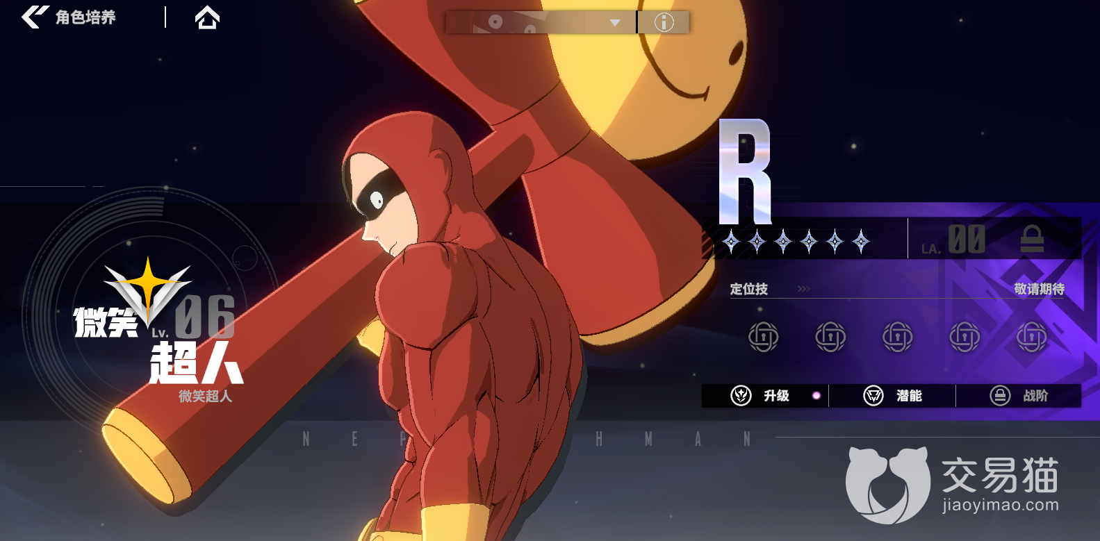 第三个角色是微笑超人,在游戏中是一个R卡,普通攻击:锤击,拥有三段普攻,剑玉抛打:这是一个核心技能:微笑超人大力挥舞剑身进行攻击,同时将球体向远处抛出。剑身和球体分别会对敌人造成伤害。抵达最远距离后,球会返回微笑超人自身所在位置并且对沿途敌人造成二次伤害。