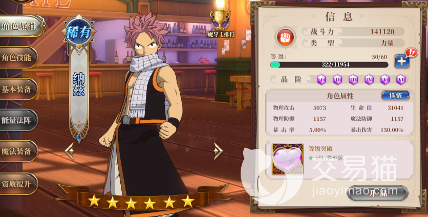 最后那就是核心输出纳兹这个角色了。纳兹在游戏当中称作是灭龙魔导士,在对战的时候可以使用强力的火焰魔法的拳击,能够在原地站着,嘴里吐出非常强烈的火焰,能给敌人带来非常巨大的火焰伤害,但是这个技能也是有着一点缺陷的,那就是在攻打敌人的时候没有办法移动,只能站在原地攻打,所以在游戏当中,我们可以把它当做是一个备用技能。纳兹在队伍当中算是一个核心的输出位置,在其他位置上的人可以代替加入一些辅助功能的角色,但是纳兹是不可代替的角色。