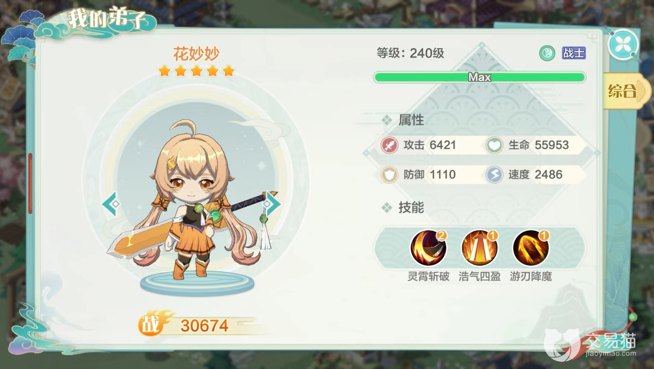 花妙妙在游戏中并不属于最高稀有度角色,因此等级上限只有240级,但是要想达到这个级别也是需要玩家花时间去肝的,就得从副本探索中到处刷怪拾取奖励,角色要消耗大量的丹药提供经验。