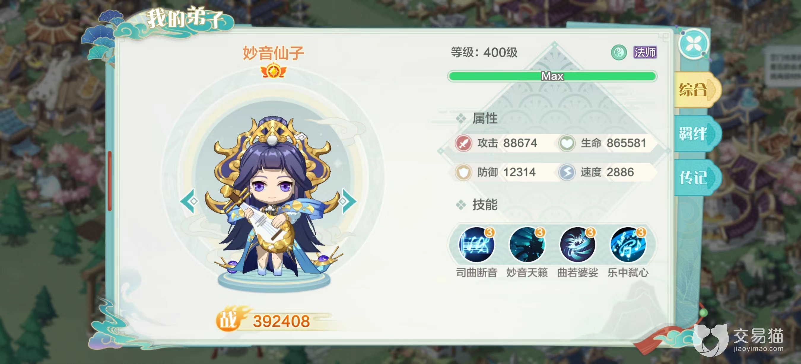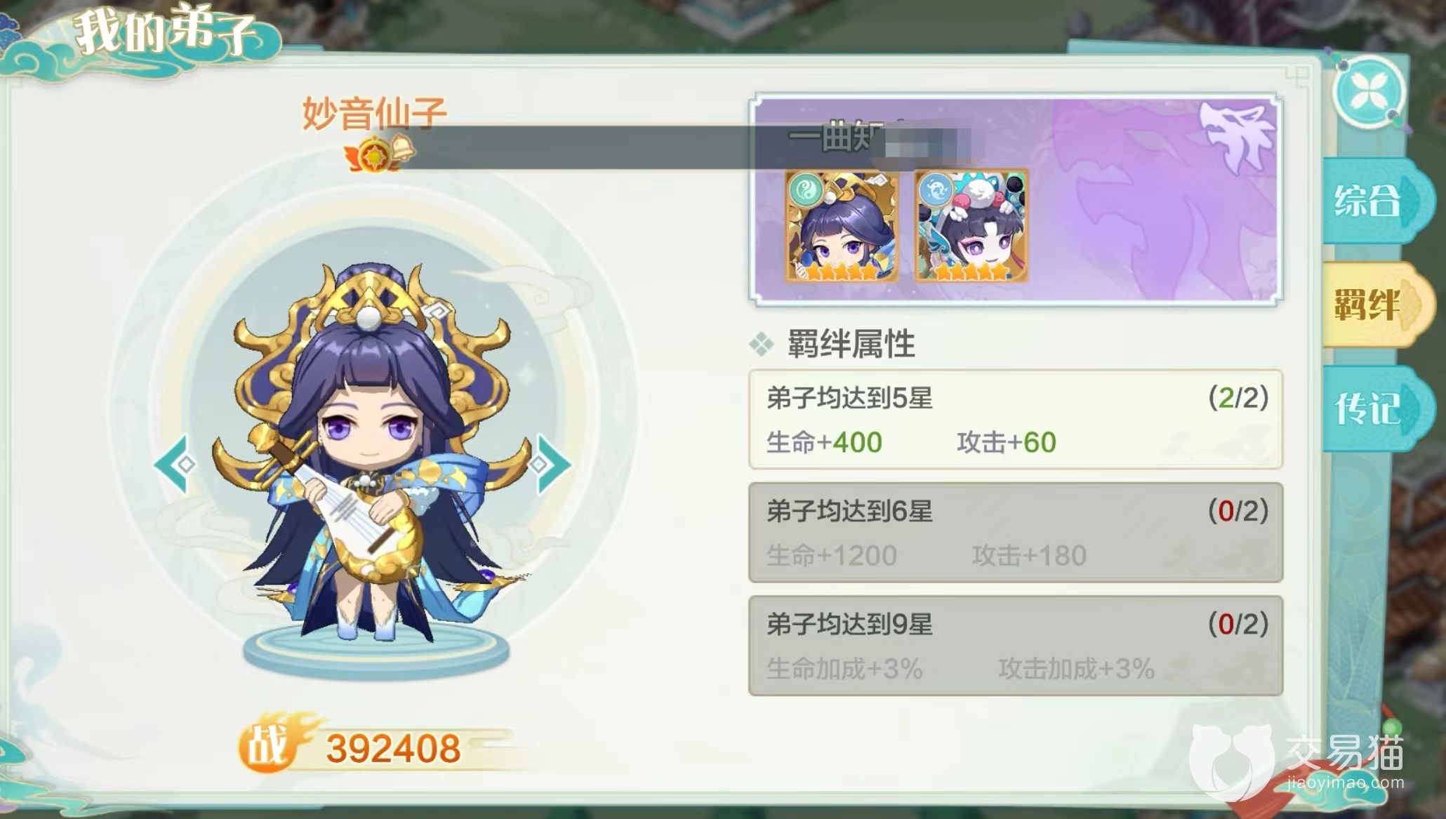 2.妙音天籁,属于被动技能,在升星期间会解锁,提升弟子的生命值和攻击力。