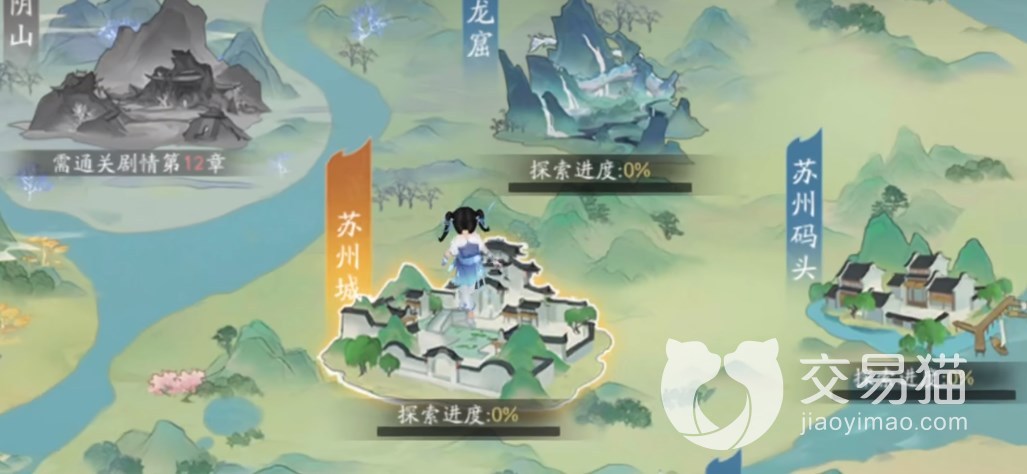探索2指得是第2大区域的地图,主要包含苏州城、苏州码头、隐龙窟这三部分,一共有10个宝箱,具体位置分别如下所示。
