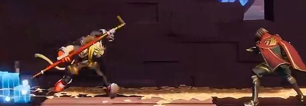 冲刺攻击的时候会让手中的金箍棒武器直接变成大锤子,然后向前方敌人的指定位置进行猛砸,可以将敌人击飞出很远距离,有机会直接秒杀残血敌人。
