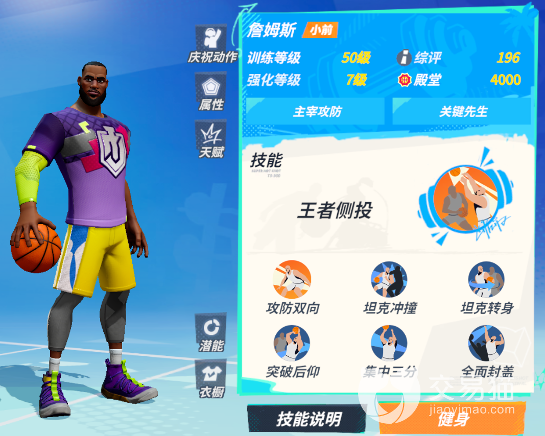 而且詹姆斯在防守方面也毫不逊色,全面封盖这个技能能够对对手进行全面无死角的盖帽,真正的攻防一体的巨星球员,不可多得的巨星球员,喜欢综合能力强的球员的球迷不要错过。