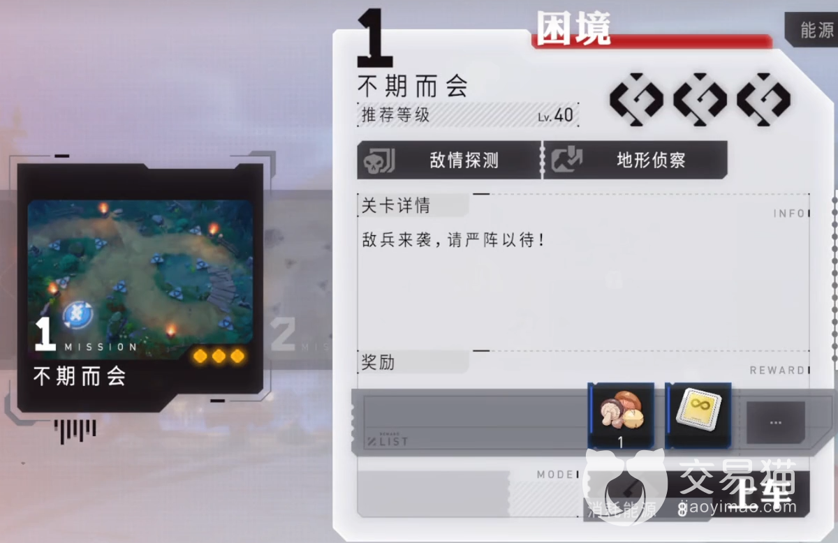 困境2-1的图叫做不期而会。本身推荐等级为40级。在此关卡里,敌人的数量不仅很多。而且图中的BOSS和精英怪都会群体伤害。这也是很多玩家都过不去这关的原因。如果练度不够的话,很容易会卡在这。