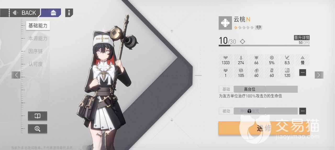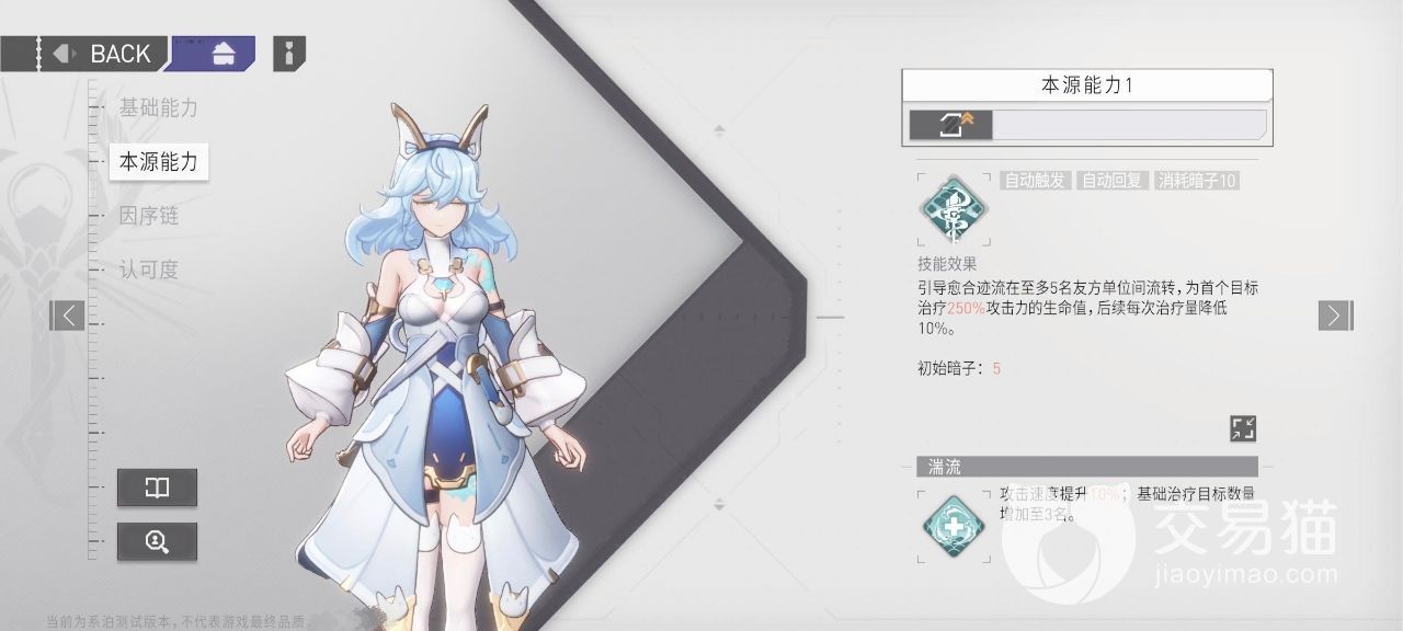 她的本源能力可以直接周边五个舍友进行恢复,为首个目标恢复250%的攻击力,后面每次治疗的话,会降低10%的治疗量,不过可以让角色的攻速提高10%,而且她在给队友治疗的时候,角色数量还能提升到3名。