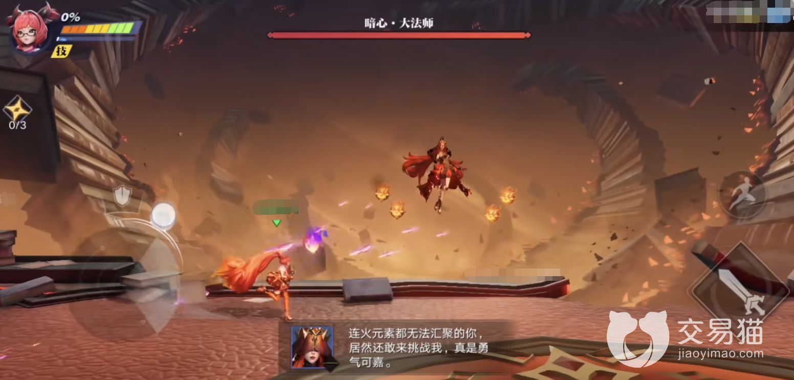 Boss的攻击手段有很多。第一个技能是让小怪对角色进行光线攻击,伤害并不高,但还是不要吃到这些攻击,毕竟打boss保证血量健康还是很重要的,避免被其他攻击所秒。建议玩家在场景中来回奔跑以此躲避这些攻击。这些小怪也是有落地机制的,玩家可以趁他们落地对他们进行攻击。Boss之后还会对目标区域释放大火球,这招伤害极高,但释放有前摇,并不是瞬发,建议玩家闪避来处理这招。