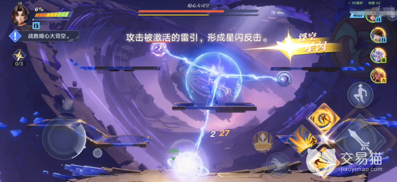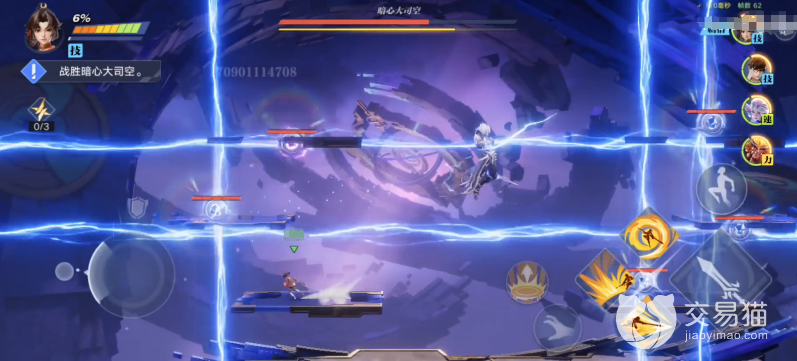 司空震的难点也很明显,就是攻击手段并不好处理。在他刚出现的时候,就会召唤雷电来攻击玩家。这一招并不好处理,他的攻击范围很大,为竖屏攻击,不断向屏幕中间压缩,压迫力十足。玩家想要处理这招就必须利用场景中的悬浮条,这个是能躲避雷电伤害的。值得一说的是,玩家对boss的攻击并没有时间场景限制,并不需要在特定时段或者特定位置才能攻击到boss,这样一来,玩家在和boss的战斗中就有了很高的操作性。