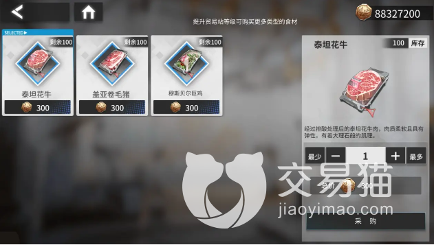 最后一种的话,大家是可以通过购买来购入食材的,不过目前游戏中可以购买到食材的地方,只有贸易站,贸易站里面的食材都是肉之类的,因为在其他的地方,没有办法获取,所以大家只能通过贸易战来获取更多的肉类食材,有肉有菜,还有水产,大家就可以在上面通过各种方式来解锁菜谱啦。