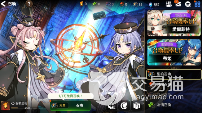 这款游戏中的抽奖方式一共有三种,圣约召唤和神秘召唤,最后一个是比较特别的月光召唤,在游戏初期的时候会给新手玩家们赠送三十次抽卡的机会,这个是一个非常好的福利,而且这三十抽可以反复使用,只要抽取自己想要的角色,不过需要主要的是这个新手抽取卡池是指定圣约召唤的,这个卡池中是没有暗属性的卡牌。