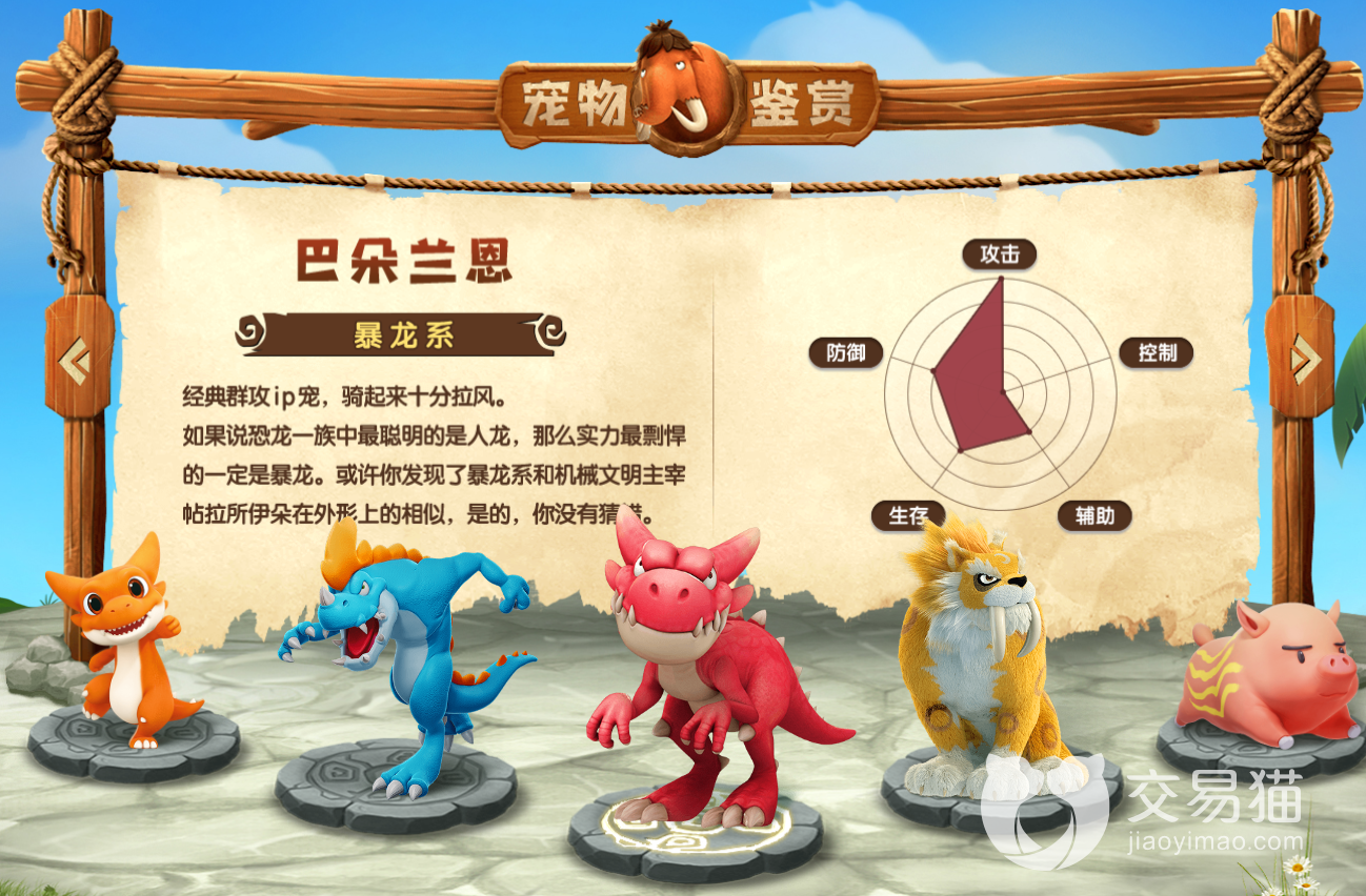在测试版本中并没有放开全部的宠物系列,但是可以从宠物图鉴中了解到具体有哪些宠物,其中霸王龙幼体摩卡和帕兰是玩家们必须要重点培养的宠物,需要玩家们多投喂和转移经验值,不过这个游戏的玩法是以宠物组队进行,其他攻击和辅助的宠物也要有所培养。