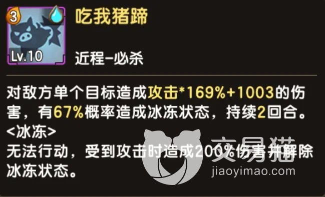 火属性的【吃我猪蹄】技能是伤害叠混乱状态,持续2个回合;