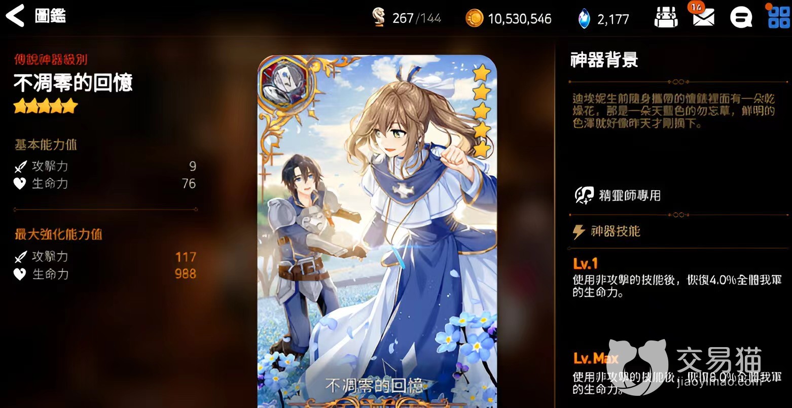 所拥有的第三个技能则是圣女的祈祷,在战斗的时候触发到这个技能,就会让圣女的攻击伤害翻倍,同时也能提升队友的攻击力,而且这个效果还会一直持续三个回合的时间,如果在这期间再给这个角色配备上恢复血量的神器,那么绝对是最强辅助了,几乎没有谁能比得过了。