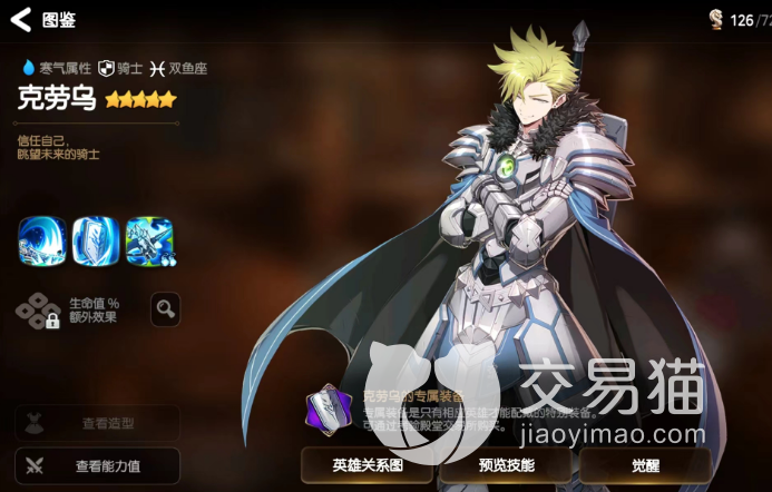 克劳乌(水):挑战敌人时能够成功,技术性比较强,并根据生命值最大化提升伤害力。也可利用盾牌将伤害推开,但推开的同时会降低攻击速度,也可以提升己方的全部防御。还可以召唤单位的攻击,这是会附加一层保护罩,主要根据所失去的血量来提升一部分伤害,并对目标造成一定的穿透效果。