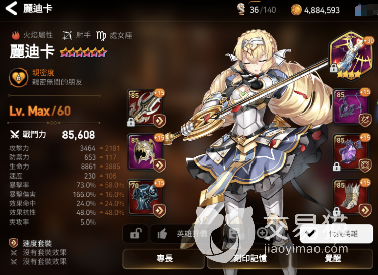 该角色作为比较强烈的副c搭配普攻追击的专属之后,可以打出高于主c的输出,对比其他的骑士,基本做不到。综合来讲,这种比较泛用的骑士类的人物是比较有用的。丽迪卡(火):火属性的射手,S1使用键进行攻击,对方的速度会降低,会造成一定的负面效果。整体的速度都会降低,即便是利用s2去攻击敌人,可能效果也是收效甚微的存在。
