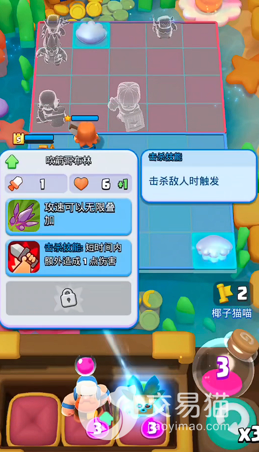 举个例子,如图,在本场作战情况下,推荐哥布林可以进行额外技能的升级,在面对场上对面人数和我方人数都较多的情况下,如果我们选择短时间内增加伤害的话,很有可能无法全部清掉,我们得选择攻速无限叠加来保证容错率。